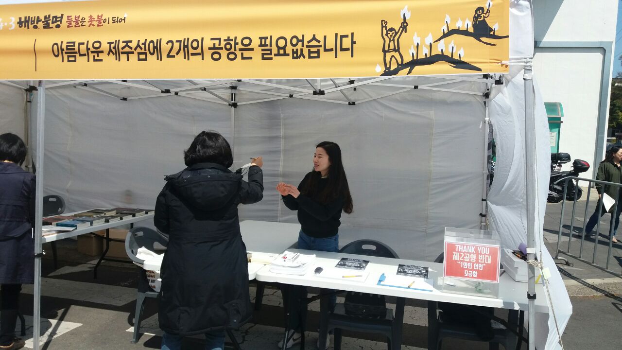 4월2일 오후 1시부터 4월3일까지 제주시청 앞에서 4.3 주간 부스 운영했습니다. 1만인선언과 함께 청와대로 보내는 엽서보내기 프로그램을 진행했습니다.