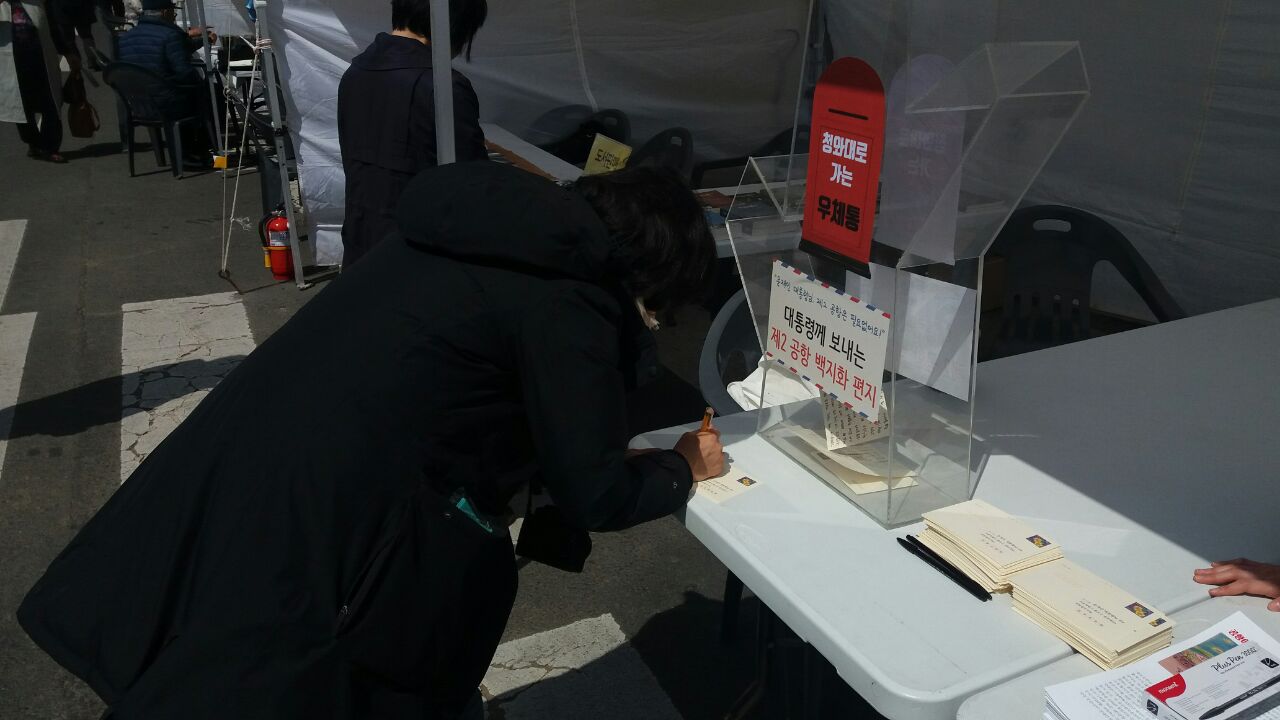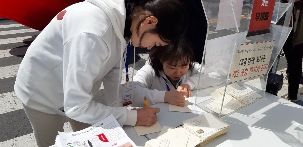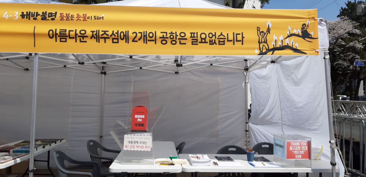 4월2일 오후 1시부터 4월3일까지 제주시청 앞에서 4.3 주간 부스 운영했습니다. 1만인선언과 함께 청와대로 보내는 엽서보내기 프로그램을 진행했습니다.