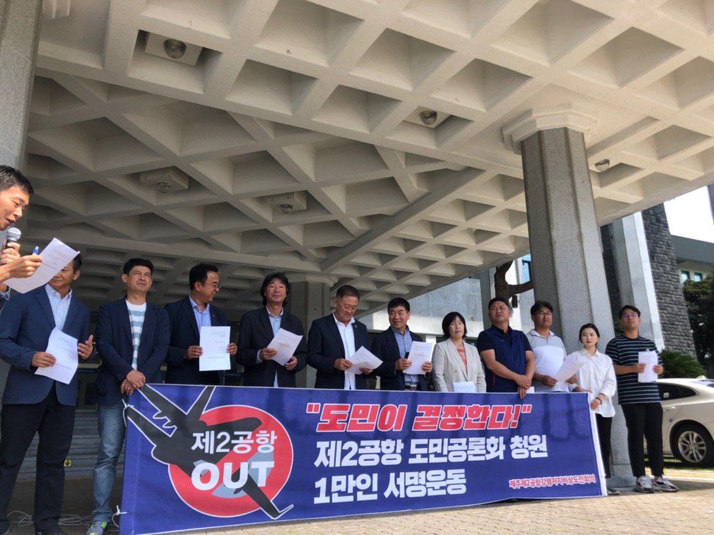 제2공항의 일방적인 강행 추진을 반대해 온 우리 역시 도민들의 자기결정권 실현 과정으로 이 문제가 전환된다면 도민들의 선택한 결과에 복종할 수 밖에 없다. 제주도의회가 제주 공항시설 확충과 관련하여 합리적, 객관적 절차를 통해 도민의견을 수렴하는 사회적 공론화와 합의과정에 나서줄 것을 요청한다. 제주도의회가 부디 ‘국토부와 도지사의 시간’을 멈추고 ‘도민들의 시간’으로 만들어 주기를 희망하고 호소한다.