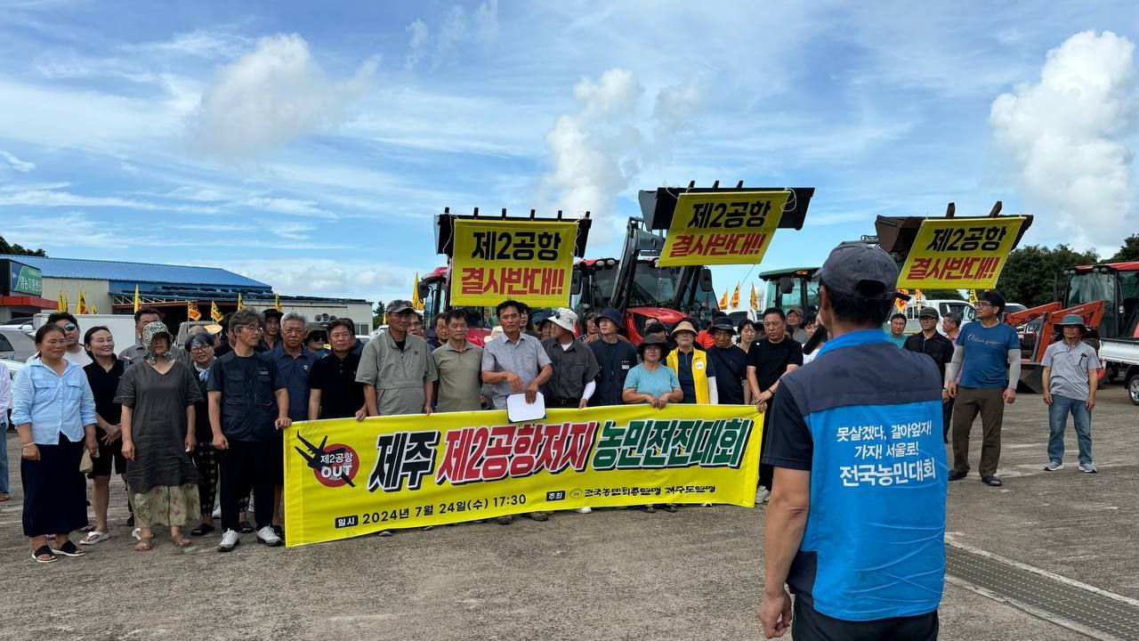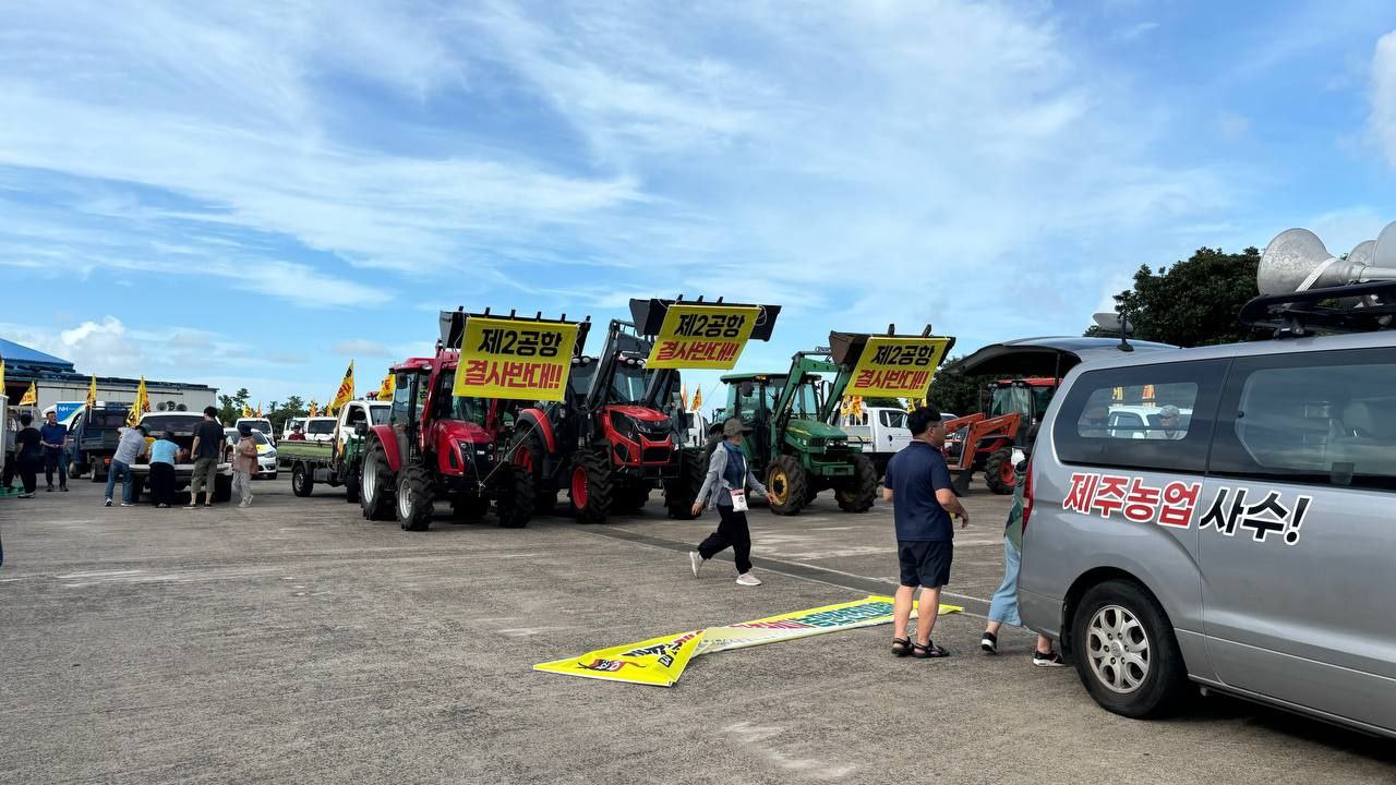 지난 7월 24일(수) 전국농민회 제주도연맹 소속 회원들과 지역 농민들, 제주지역 시민사회 활동가들이 차량과 농기구를 이용한 제2공항 저지 전진대회를 성산읍 관내에서 가졌습니다. 이날 50여대의 차량과 농기구를 이용한 행진은 제2공항 예정지 마을 신산리를 출발하여 온평리, 신양리, 성산리, 오조리, 시흥리, 고성리를 걸처 수산리에서 마무되었습니다. 차량행진의 모습은 제2공항 기본계획 고시를 앞둔 시점에 이뤄져 성산읍관내 지역주민들에게 새롭게 제2공항이 필요 없음을 알리는 계기가 되었습니다.