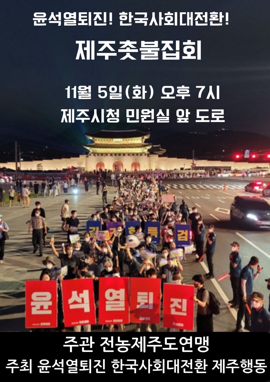 | 윤석열정권퇴진! 한국사회 대전환 제주 촛불집회 (0) | 2024.12.20 |