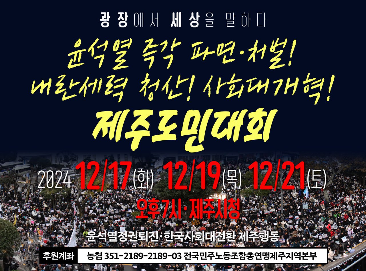 | 윤석열 체포/구속 제주농민대회 (0) | 2024.12.20 |