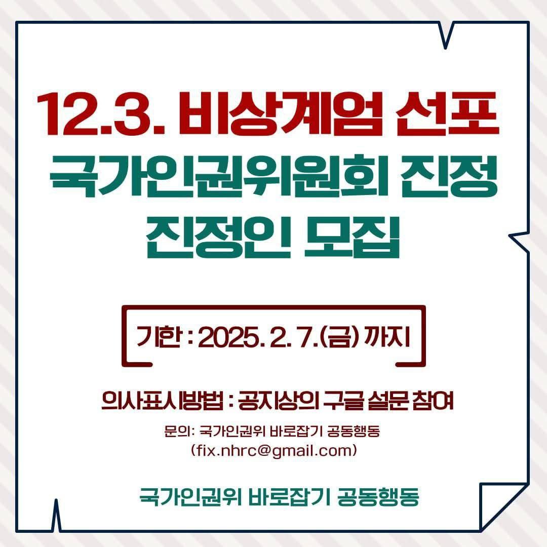 📍모집 목적: 12.3.비상계엄 선포 국가인권위원회 진정 진정인 모집