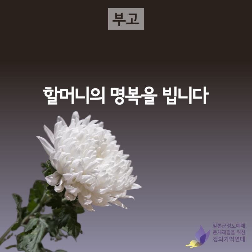 일본군성노예제 문제해결 운동을 하며 통일이 되면 고향에 있는 가족들을 만나고 싶다는 바람을 가지고 사셨던 할머니, 노래로 모든 시름을 잊는다 하시며 노래 부르시던 할머니는 일본 정부의 진정한 사죄를 받지 못하고 2025년 2월 16일 세상을 떠나셨습니다.