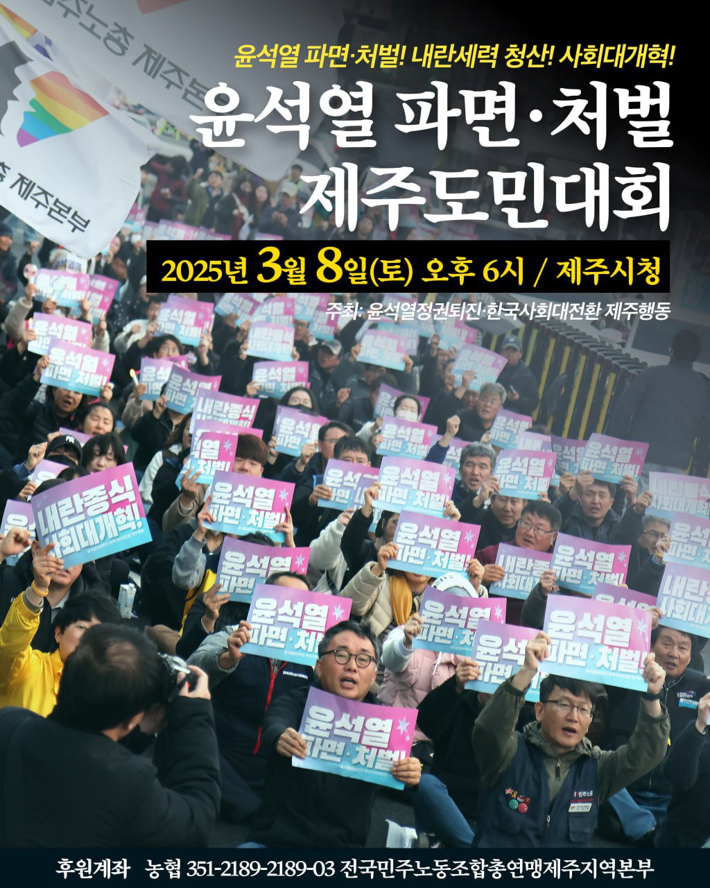 | 3월22일 내란수괴 윤석열 즉각파면 제주도민대회 (0) | 2025.03.20 |
