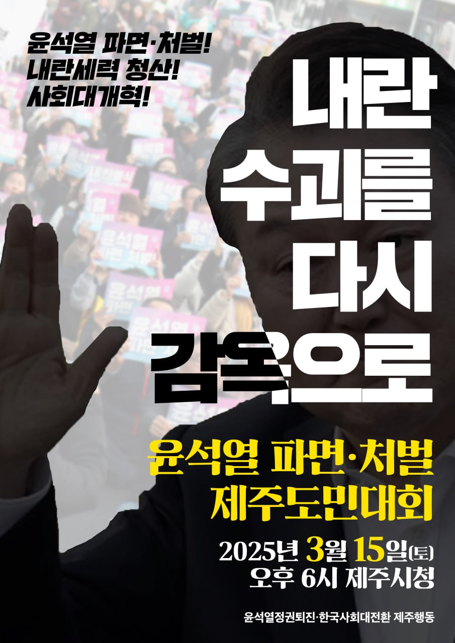 | 3월22일 내란수괴 윤석열 즉각파면 제주도민대회 (0) | 2025.03.20 |