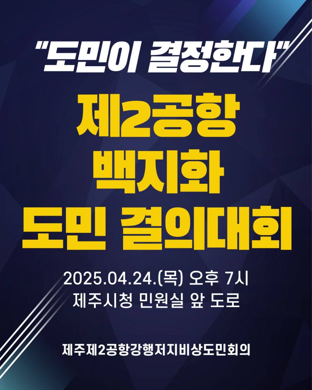 이번주 24일(목) 오후 7시 제주시청 민원실 앞에서는 제2공항 도민 결의대회를 진행합니다. 많은 분들의 참여 부탁드립니다!