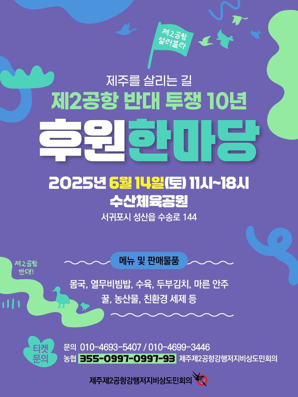 제주 제2공항 반대 투쟁 10년! 후원 한마당이 6월 14일에 진행됩니다. 많은 관심과 참여 요청드립니다.