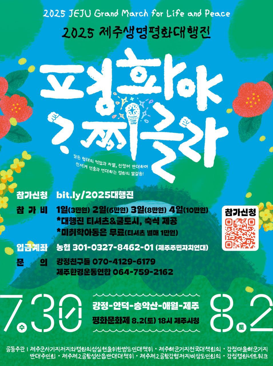 ☮️ 참가비 입금 계좌 : 농협 301-0327-8462-01 (제주주민자치연대 제주생명평화대행진)