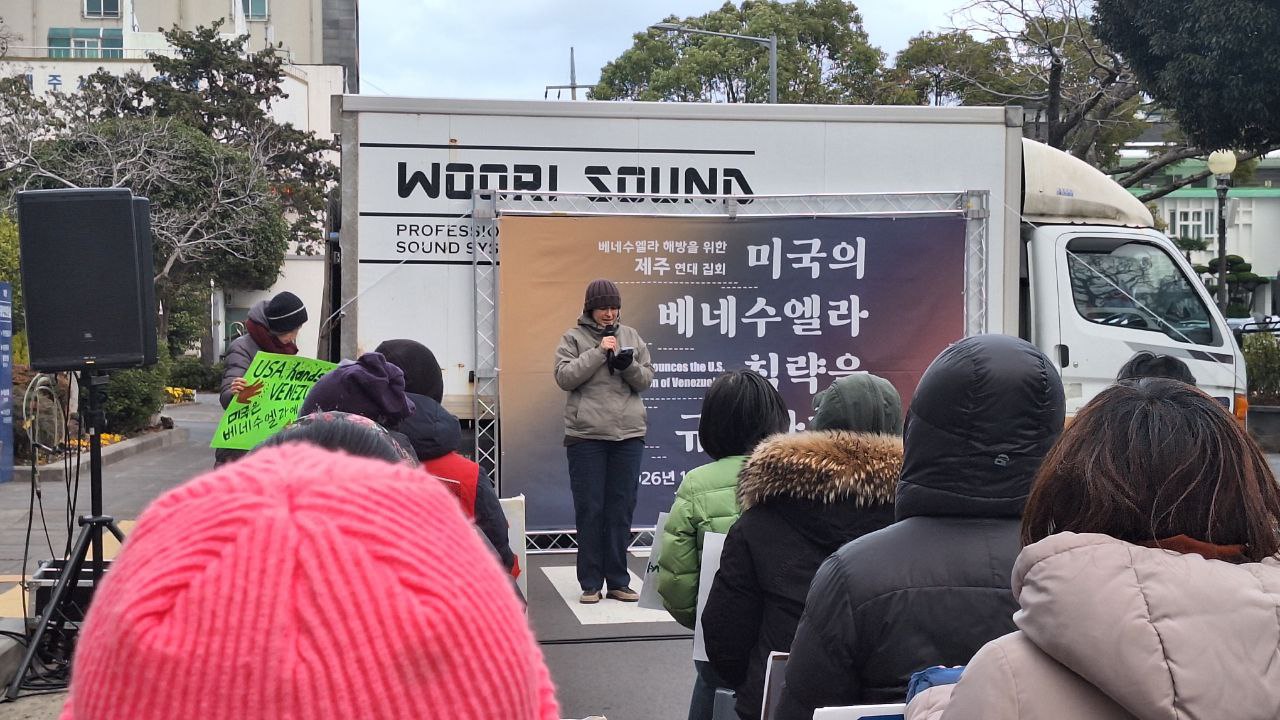 평화의 섬 제주는 말뿐인 평화의 섬이 되어 해군기지가 들어서고 신공항이란 이름아래 공군기지가 추진되고 우주산업이란 이름아래 한화와 같은 전쟁무기 기업들이 우주 시설을 세우는 등 군사화가 진행되고 있다. 베네수엘라를 침략하기 위해 20년간 방치되었던 푸에르토리코의 해군기지가 재무장된 것 처럼 제주는 미국의 대중국 전초기지로 확장되어가고 있다. 4.3 항쟁의 역사를 가진 제주는 제국주의에 맞서는 전 세계 민중의 일원이며 평화와 민주주의를 구현해야 할 인류 공통의 권리와 책임을 안고 있다. 평화의 섬 제주의 지자체 장인 오영훈 도정과 김한규․문대림․위성곤 국회의원 등 책임 있는 정치권이 미국의 베네수엘라 침략에 대해 침묵하는 것 역시 공모적이다. 우리가 제국주의를 끝내지 못한다면 제국주의가 우리를 끝낼 것이다.