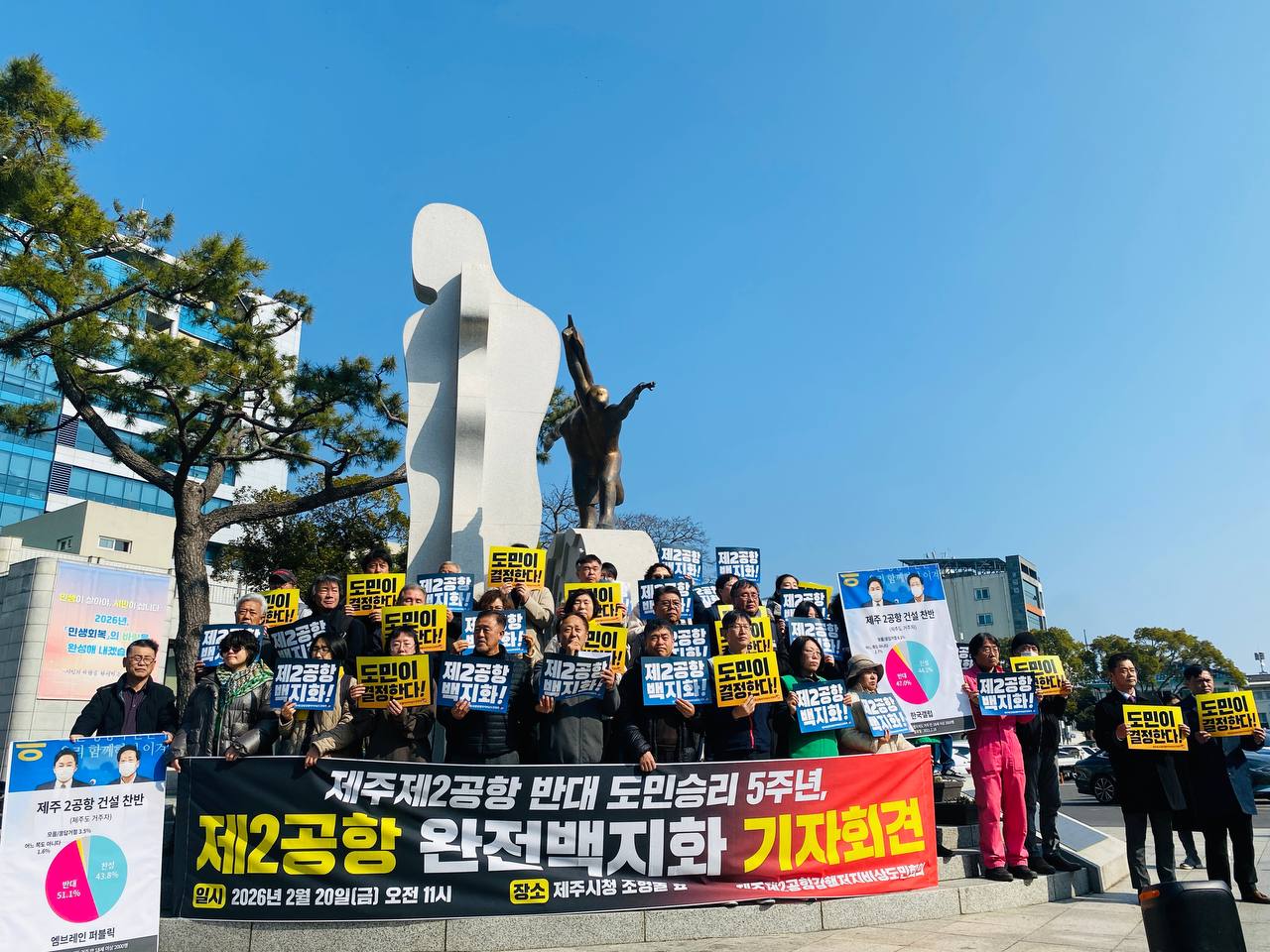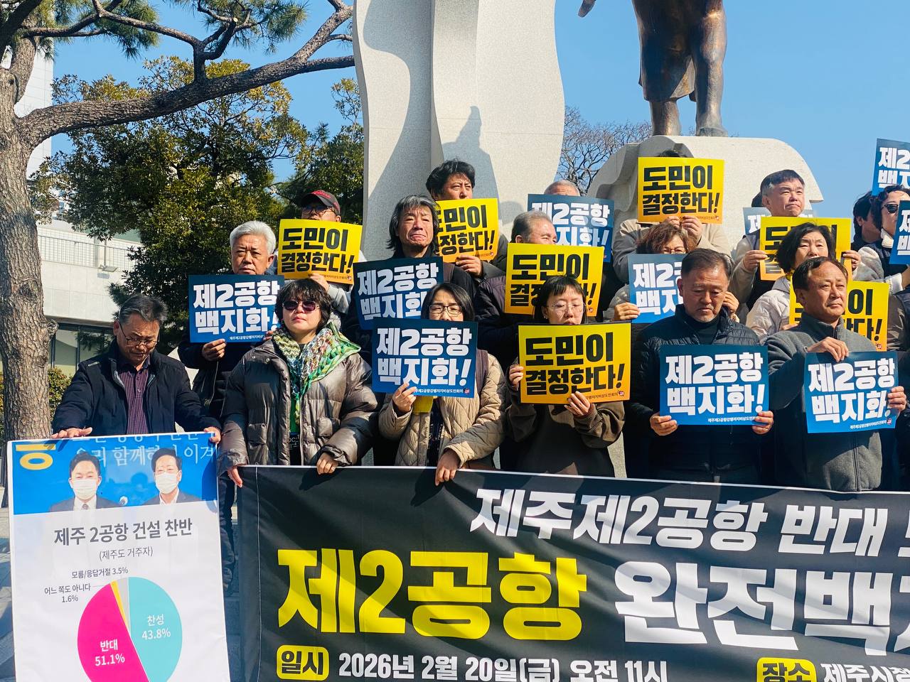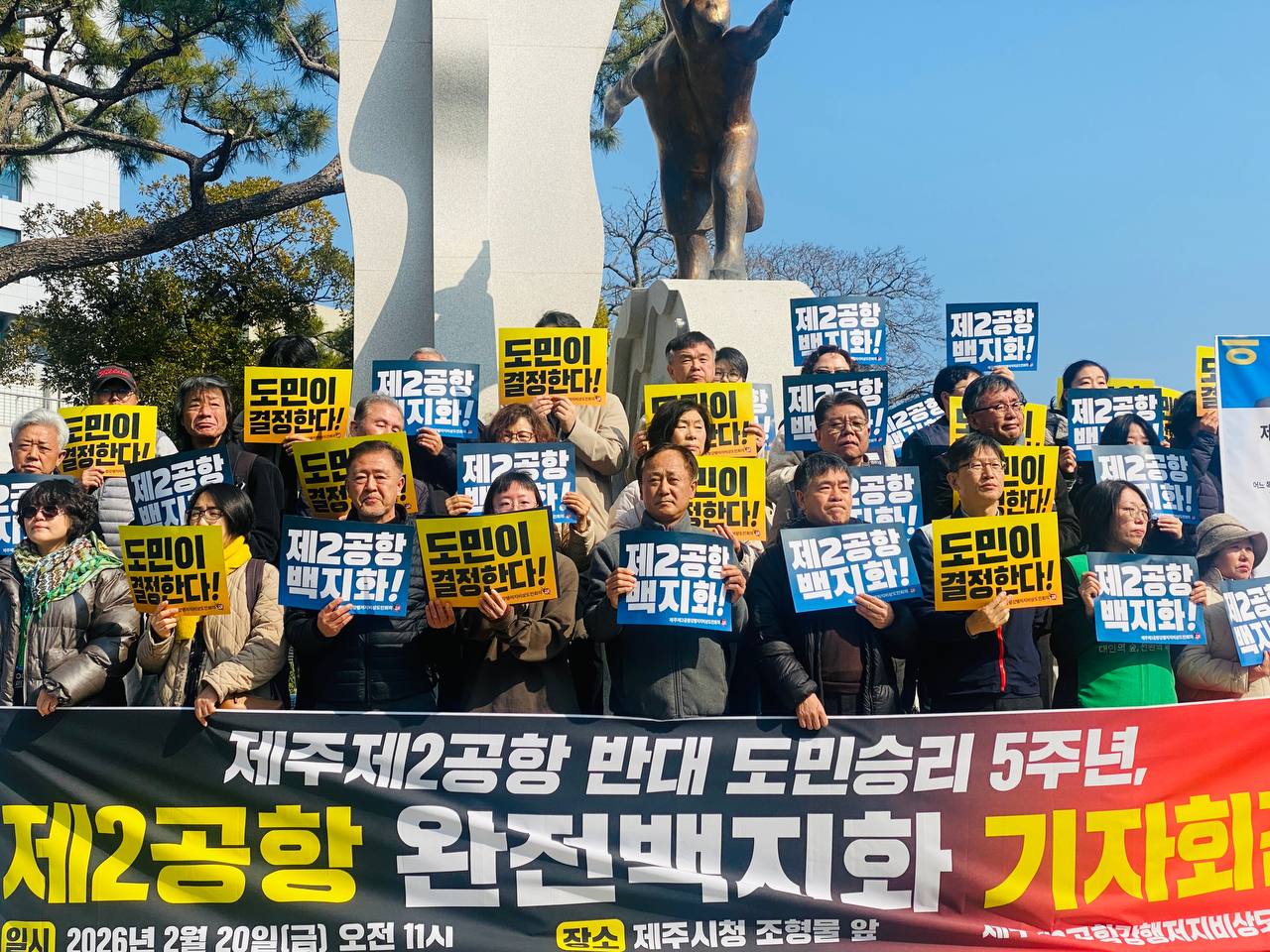 제2공항을 막아내기 위해 끈질기게 포기하지 않고 손을 맞잡아 주신 도민 여러분과 함께, 도민결정권을 쟁취하고‘제2공항 백지화’라는 승리의 역사를 다시 이루어 내겠습니다. 제2공항을 백지화하고 생명과 평화가 넘치는 제주다운 제주로 나아가는 길에 끝까지 힘을 모아주시길 간곡히 호소드립니다.