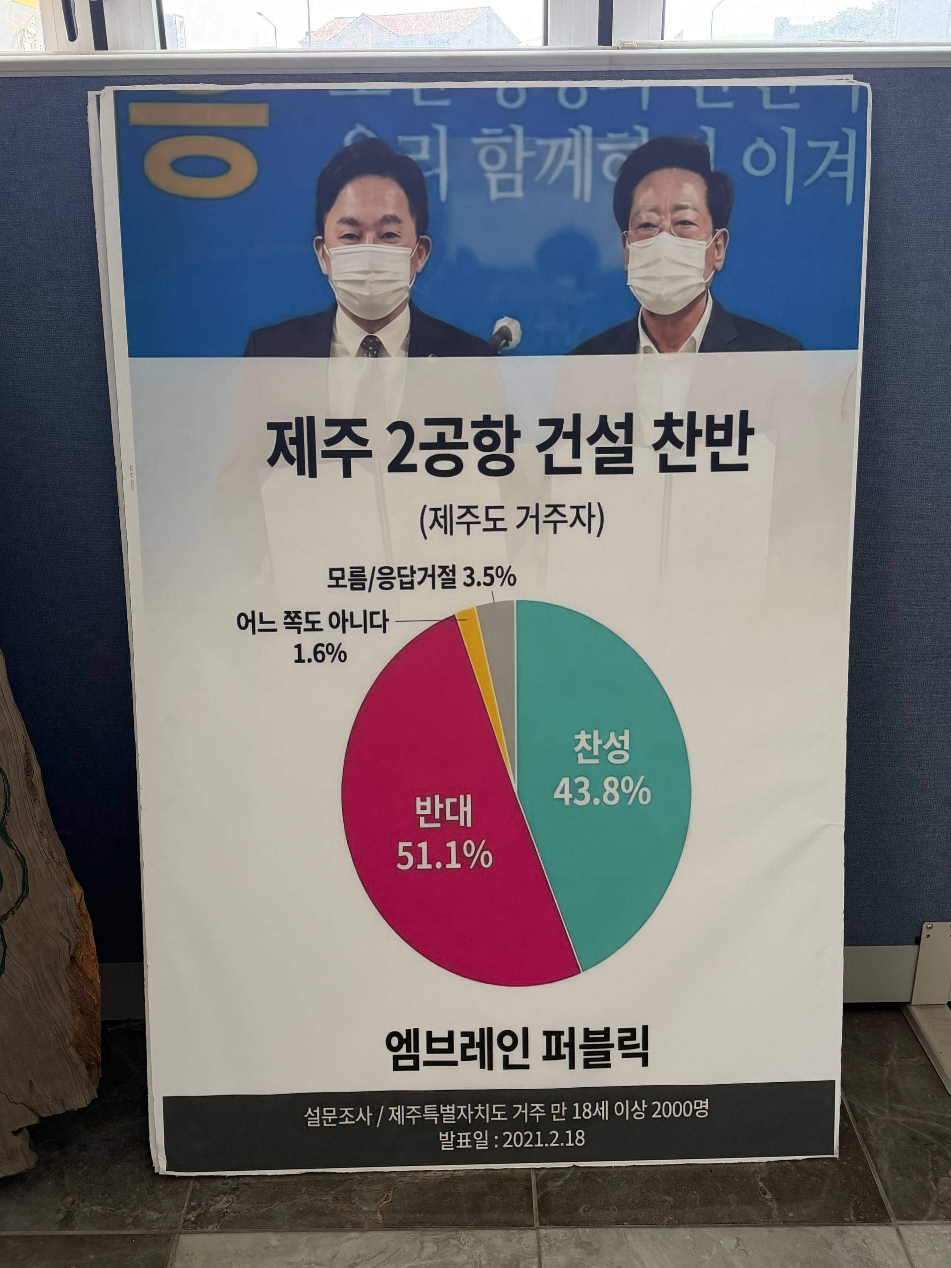 지난 2021년 2월 18일 발표된 여론조사에서 제2공항에 대한 도민의 뜻은 ‘반대’로 명확히 결론 났습니다. 제주도민의 뜻을 존중하겠다는 국토교통부의 약속에 따라 제주도와 도의회가 합의하여 실시한 여론조사였습니다. 그런데 도지사 원희룡은 도민의 뜻을 거슬러 제2공항 강행의 앞잡이를 자처했습니다. 그리고 내란 우두머리 윤석열과 국토교통부장관 원희룡에 의해 제2공항은 다시금 강행되었습니다.